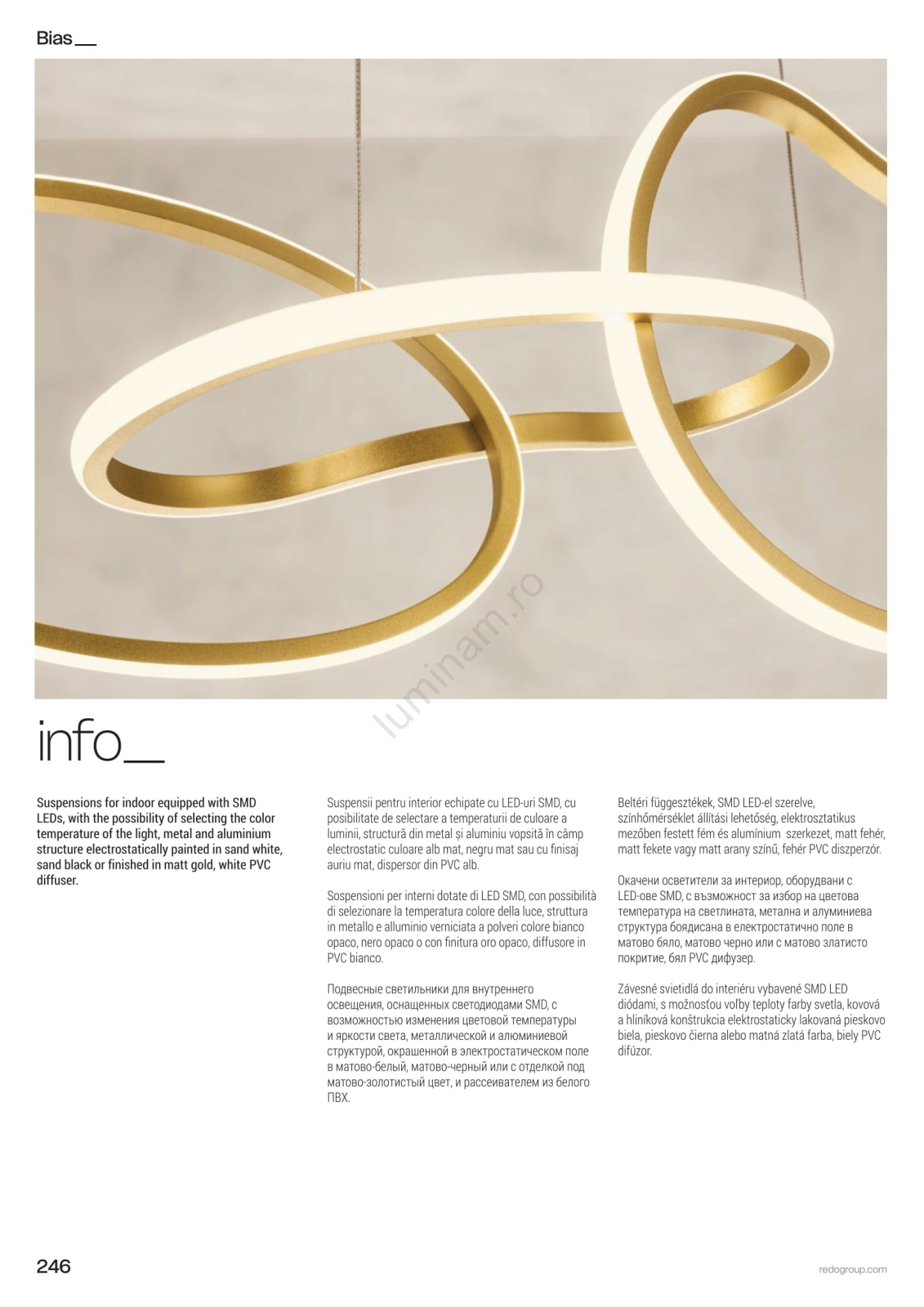 • Redo 01-3392 - Pendul LED dimabil pe cablu BIAS LED/120W/230V 3000/4500/6500K CRI 90 auriu