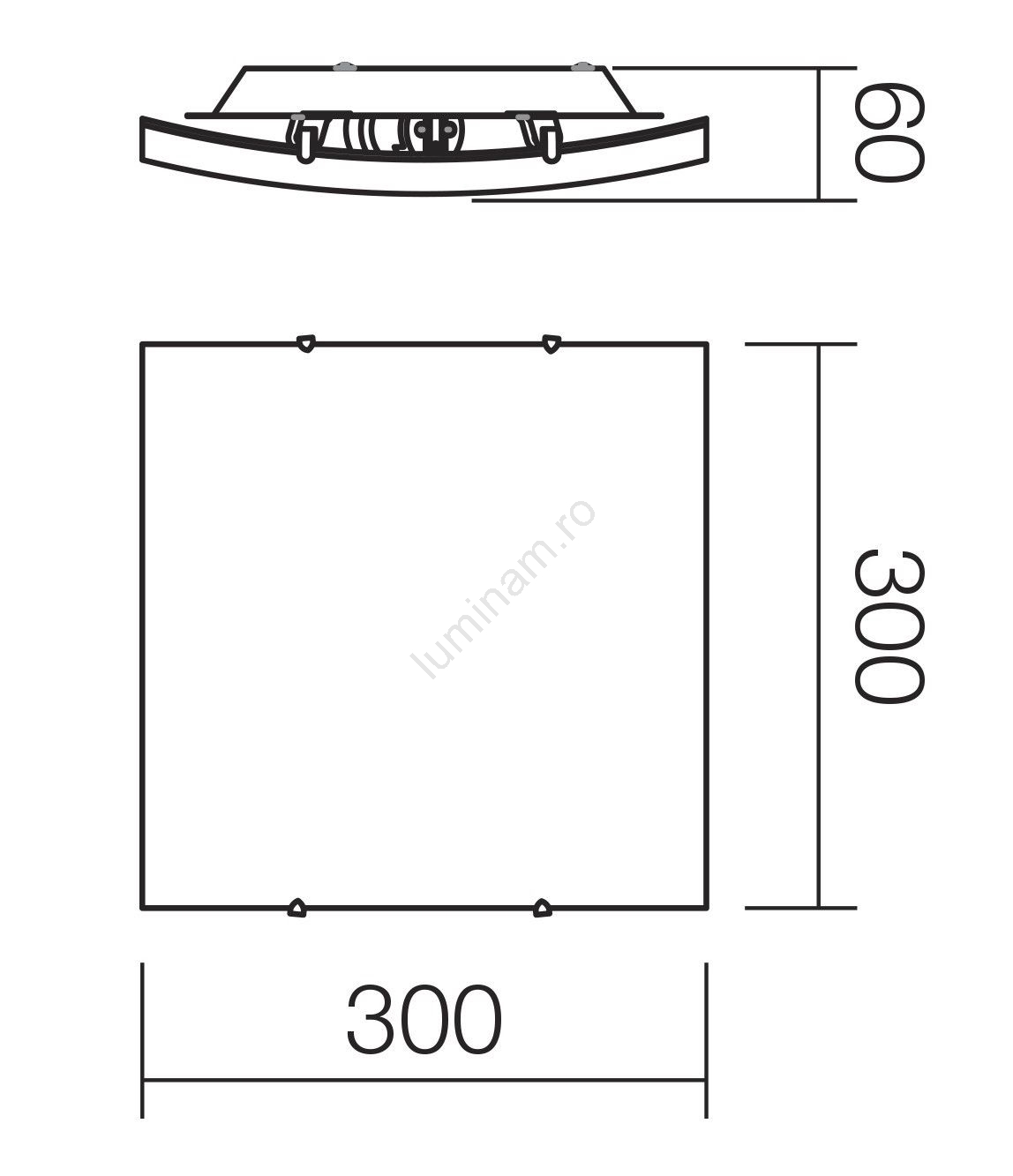 Redo ISIDE 05-904 - Plafonieră 1x E27/42W/230V, 30x30 cm, transparentă