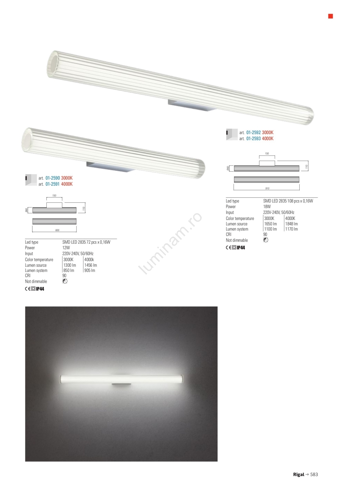 Redo 01-2593 - Aplica LED pentru oglindă de baie RIGAL, 18W, 230V, 91 cm, CRI 90, IP44, crom lucios/alb