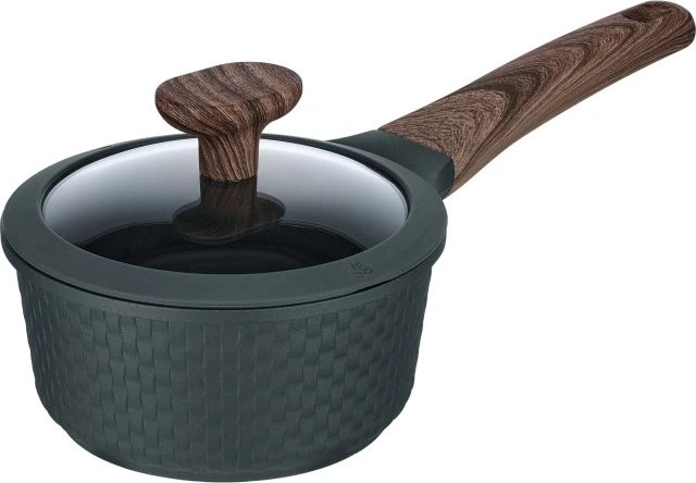 • Dispune de un mâner ergonomic cu finisaj antiderapant Soft Touch cu decor de lemn, care rămâne rece la atingere. Fundul este, de asemenea, consolidat cu un disc special anti-deformare, care protejează forma vasului chiar și în utilizarea zilnică.