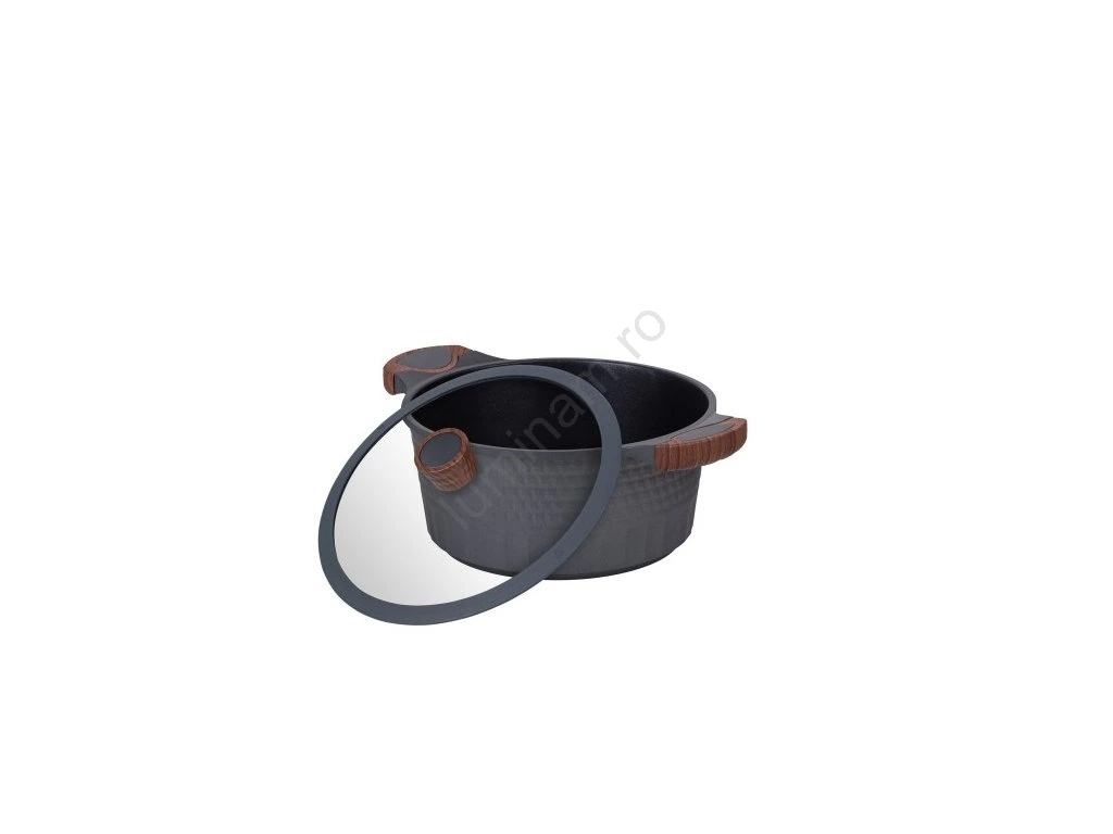 • Diametrul de 24 cm și volumul de 5,3 litri oferă o capacitate ideală pentru pregătirea meselor pentru întreaga familie, iar aluminiul turnat asigură un transfer rapid al căldurii și performanță stabilă pe toate tipurile de plite.