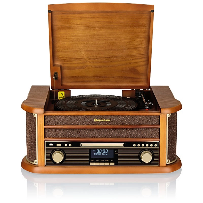 • Radio retro din lemn DAB/DAB+ / FM cu gramofon, CD-MP3, player de casete, Bluetooth, USB și AUX-IN.