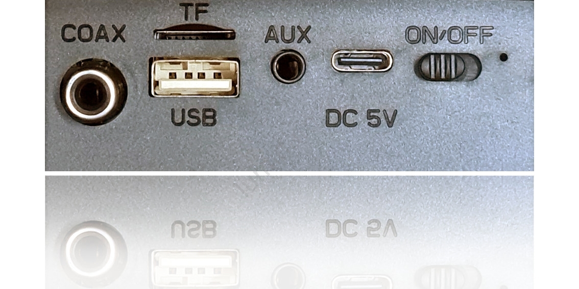 • Intrări audio: jack de 3,5mm (AUX) și intrare coaxială RCA pentru conectare la TV sau PC.