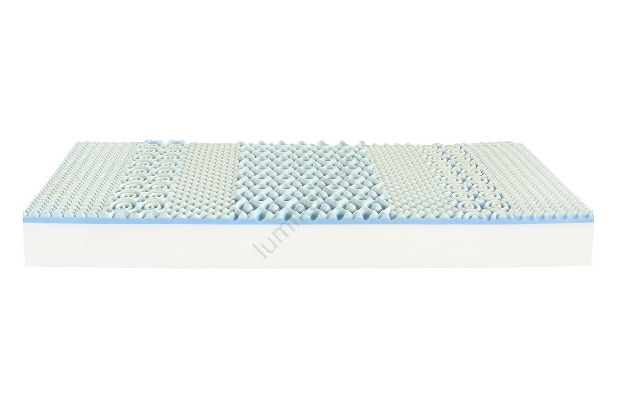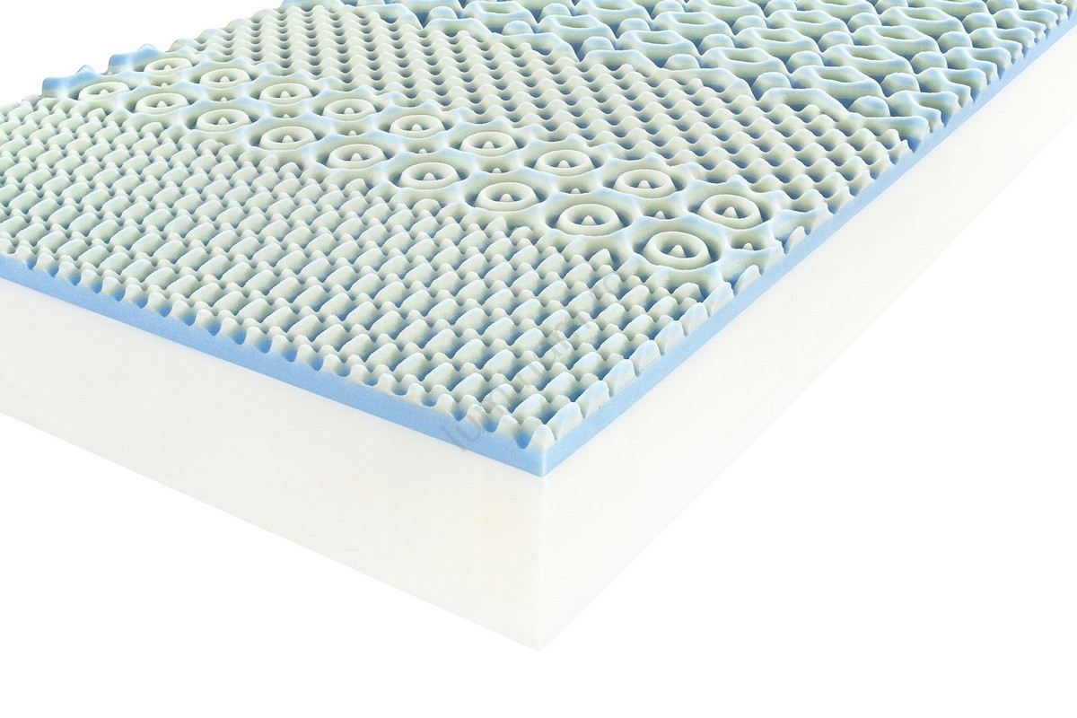 • Stratul superior cu spumă cu memorie 3D combinată cu spumă hibridă prelucrată la rece – inclusiv profilul wellness cu 7 zone și stratul inferior din spumă Flexi prelucrată la rece cu profilare de masaj.