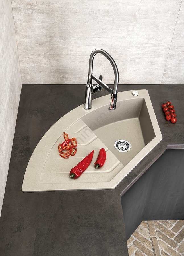 • Chiuveta este fabricată din granit și are un design de colț.