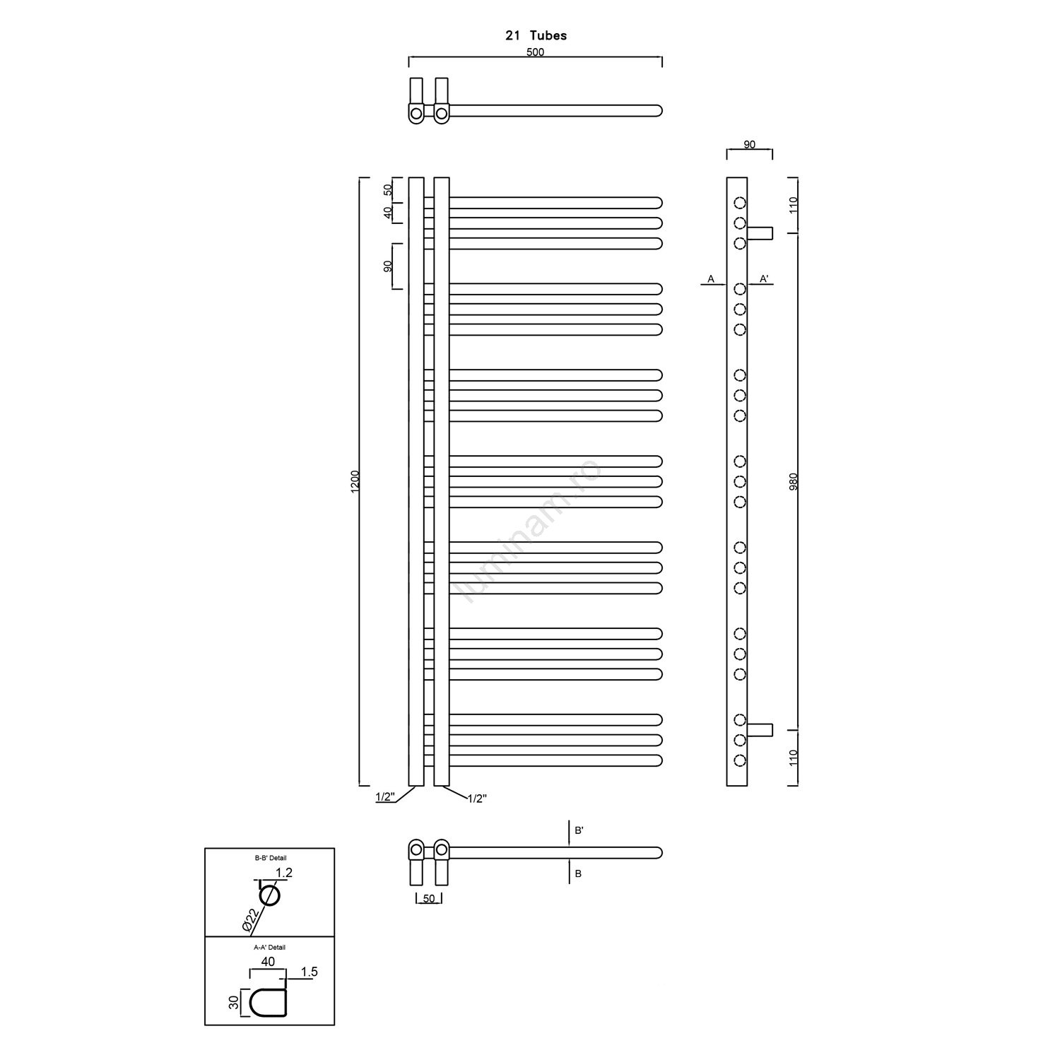 Radiator de baie Sapho DORLION 400W/230V 50x120 cm alb