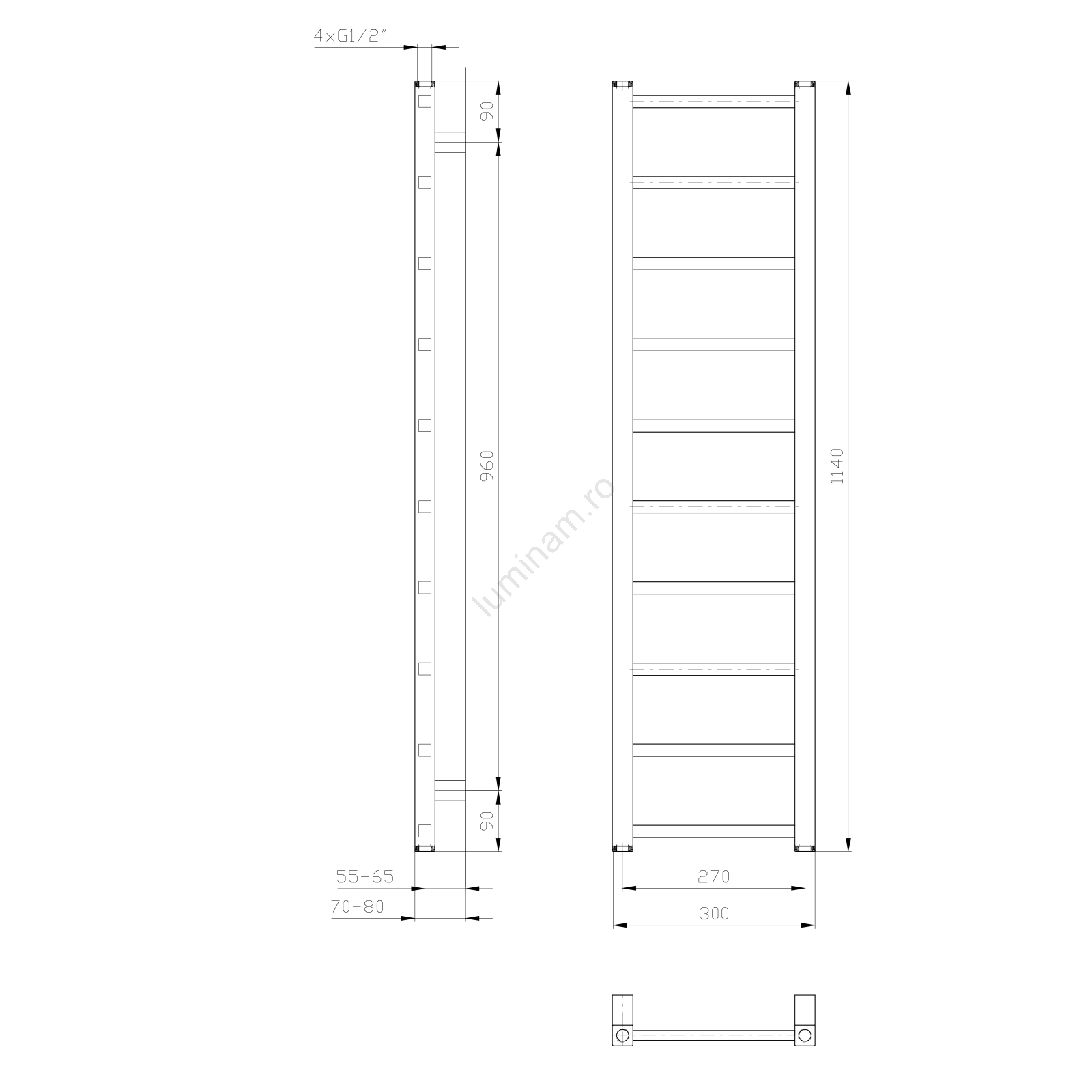 Sapho - Radiator de baie METRO LIGHT 211 W, 30 x 114 cm, alb