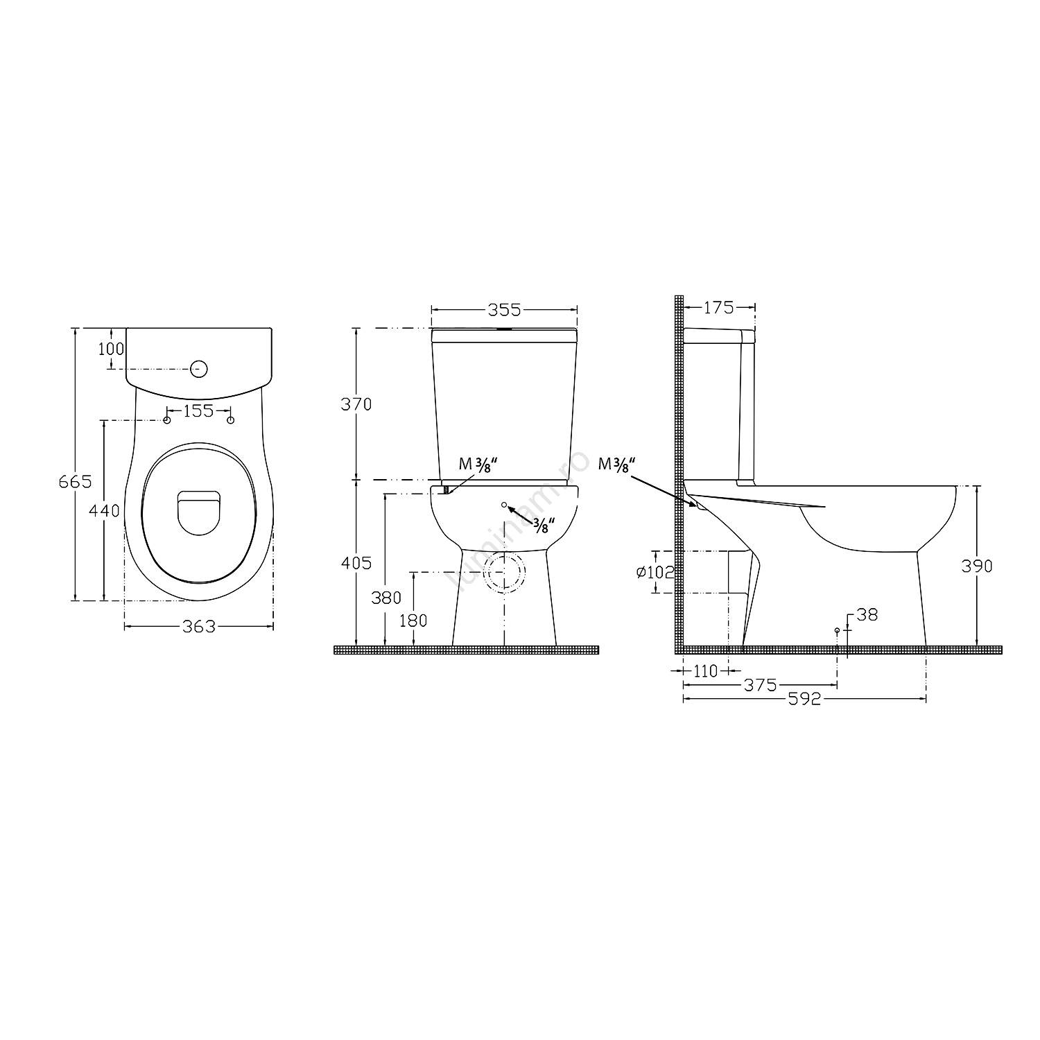 • Include un rezervor cu mecanism de spălare și buton dublu pentru economisirea apei.