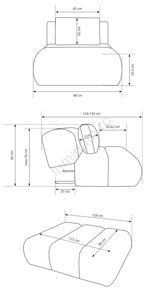 • Adâncimea șezutului de 52-62 cm oferă suficient spațiu pentru un șezut relaxat și ergonomic.