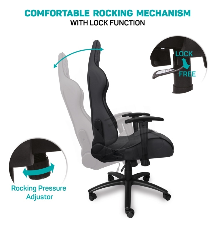 • Fabricat din țesătură de înaltă calitate, care, în combinație cu cadrul din oțel, garantează o durată lungă de viață și rezistență la uzură în timpul jocurilor zilnice pe calculator.