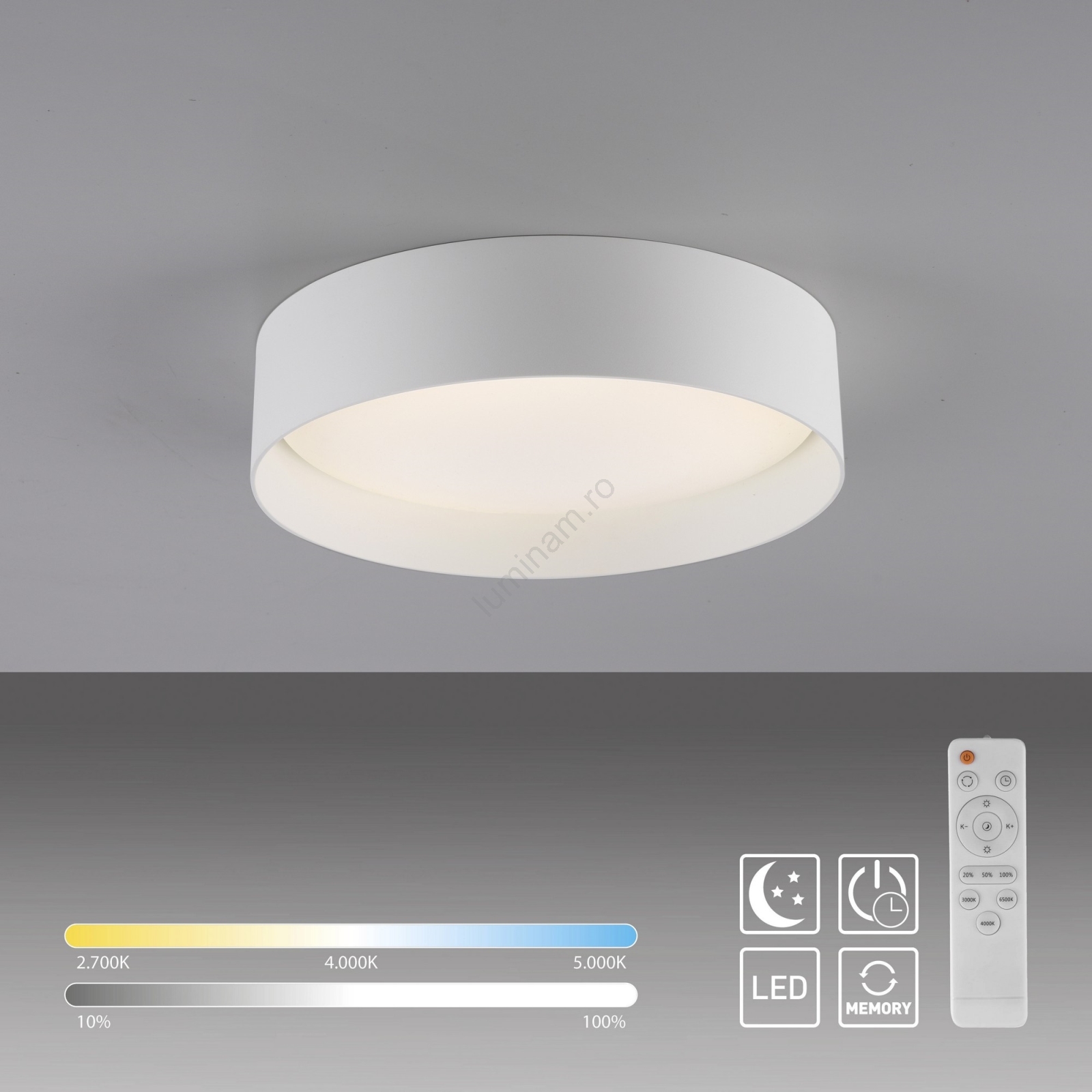 Schöner Wohnen 14593-16 - Plafonier LED dimabil TAVOLI, 10 W, 230 V, 2700–6500 K, Ø 28,5 cm, alb + telecomandă