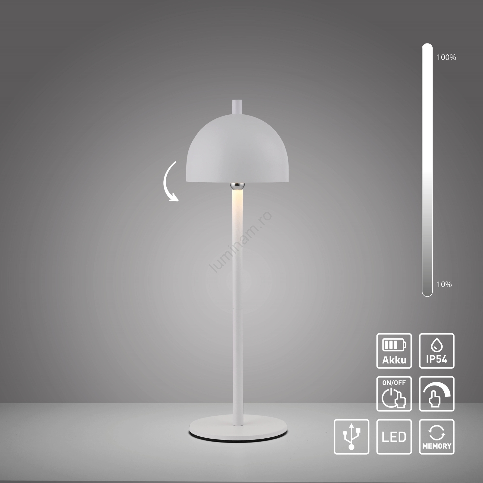• Schöner Wohnen 19244-16 - Lampă de masă LED reîncărcabilă, reglabilă, cu comandă tactilă BELLIS LED/2,5W/5V 2600 mAh IP54 albă