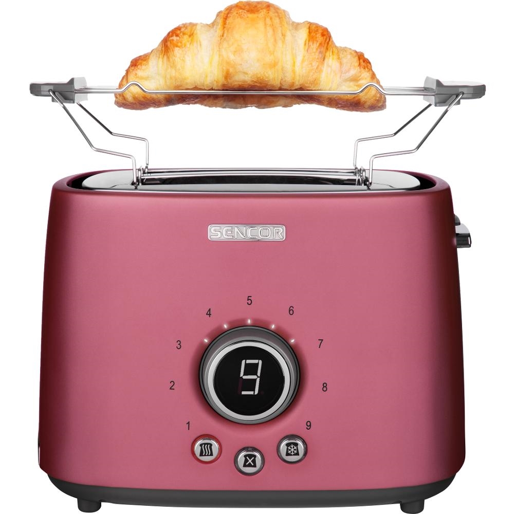 Sencor - Prăjitor de pâine cu 2 fante și suport pentru încălzire, 1000W/230V, roz
