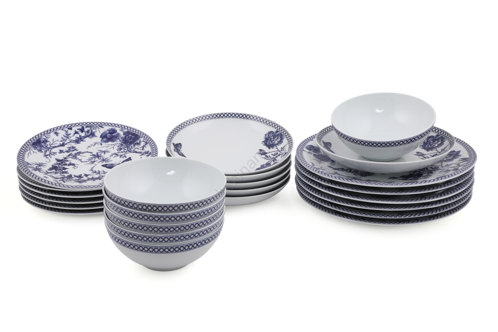 Serviciu de masă din porțelan, 24 piese, alb/albastru