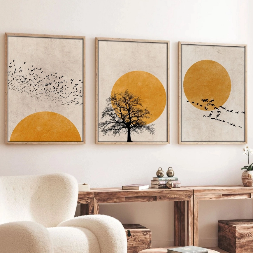 • Set de 3 tablouri cu ramă foto 50 x 70 cm, bej/portocaliu