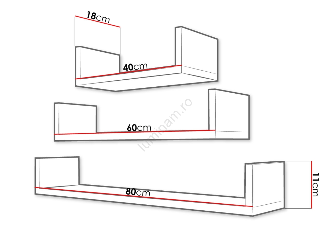 • Set de trei rafturi de perete pentru expunerea cărților, decorațiunilor și multor altor obiecte.