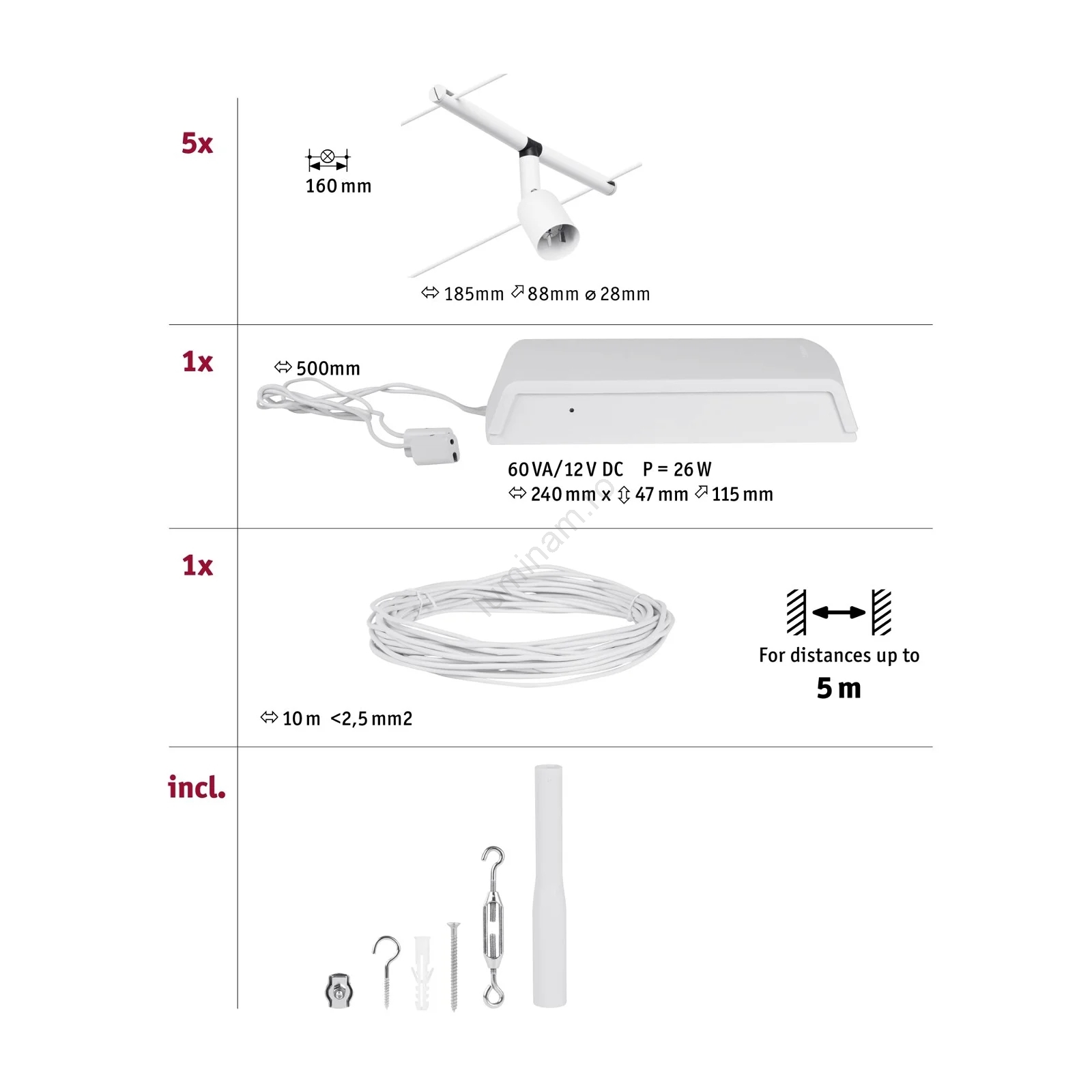 • Paulmann 94458 - SET 5xGU5,3/10W Spoturi pentru sistem cu cablu SALT 230V alb