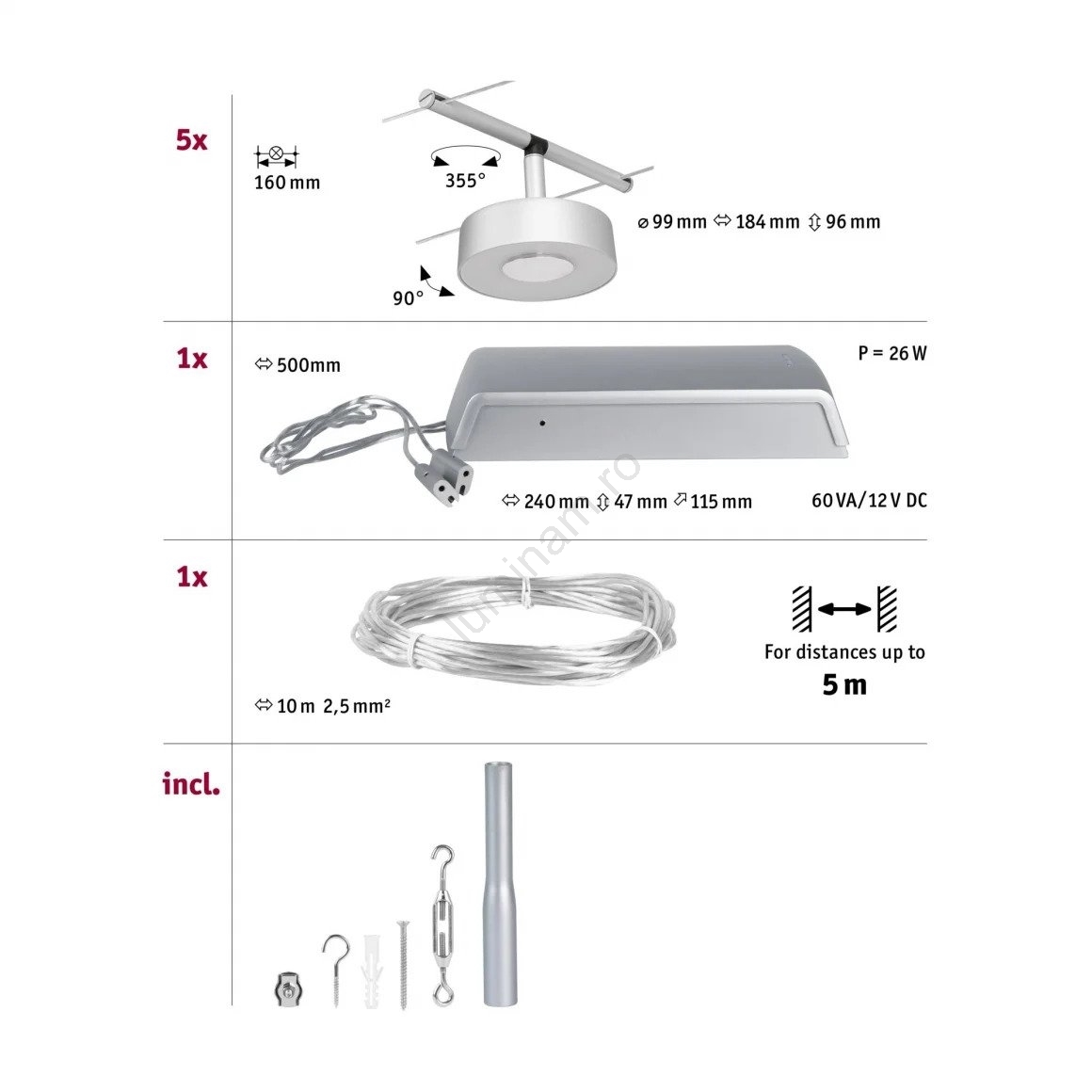 • Paulmann 94475 - SET 5xLED/5W Spoturi pentru sistem cu cablu CIRCLE 230V crom mat