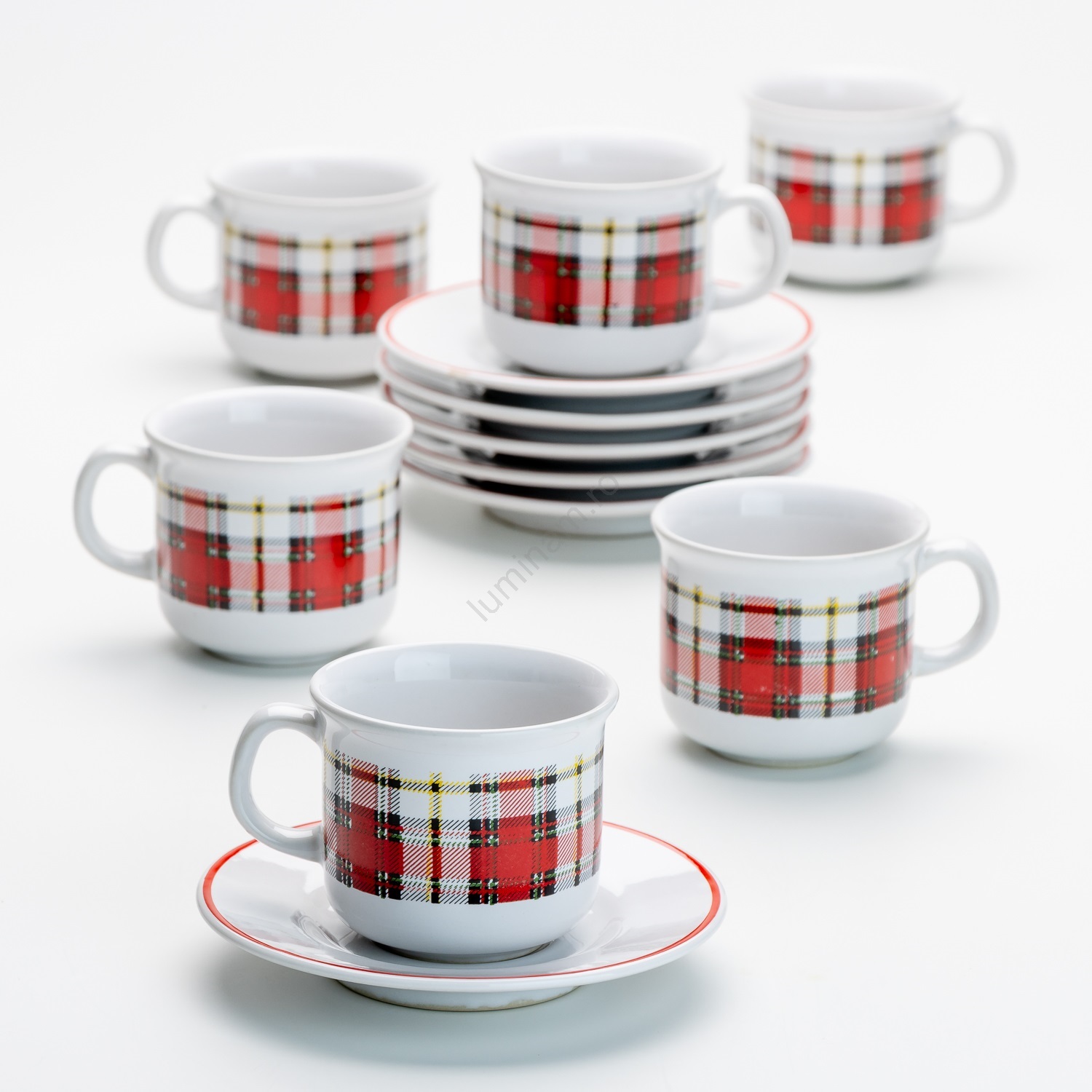 Serviciu ceramic de cafea 6x ceașcă cu farfurioară, carouri