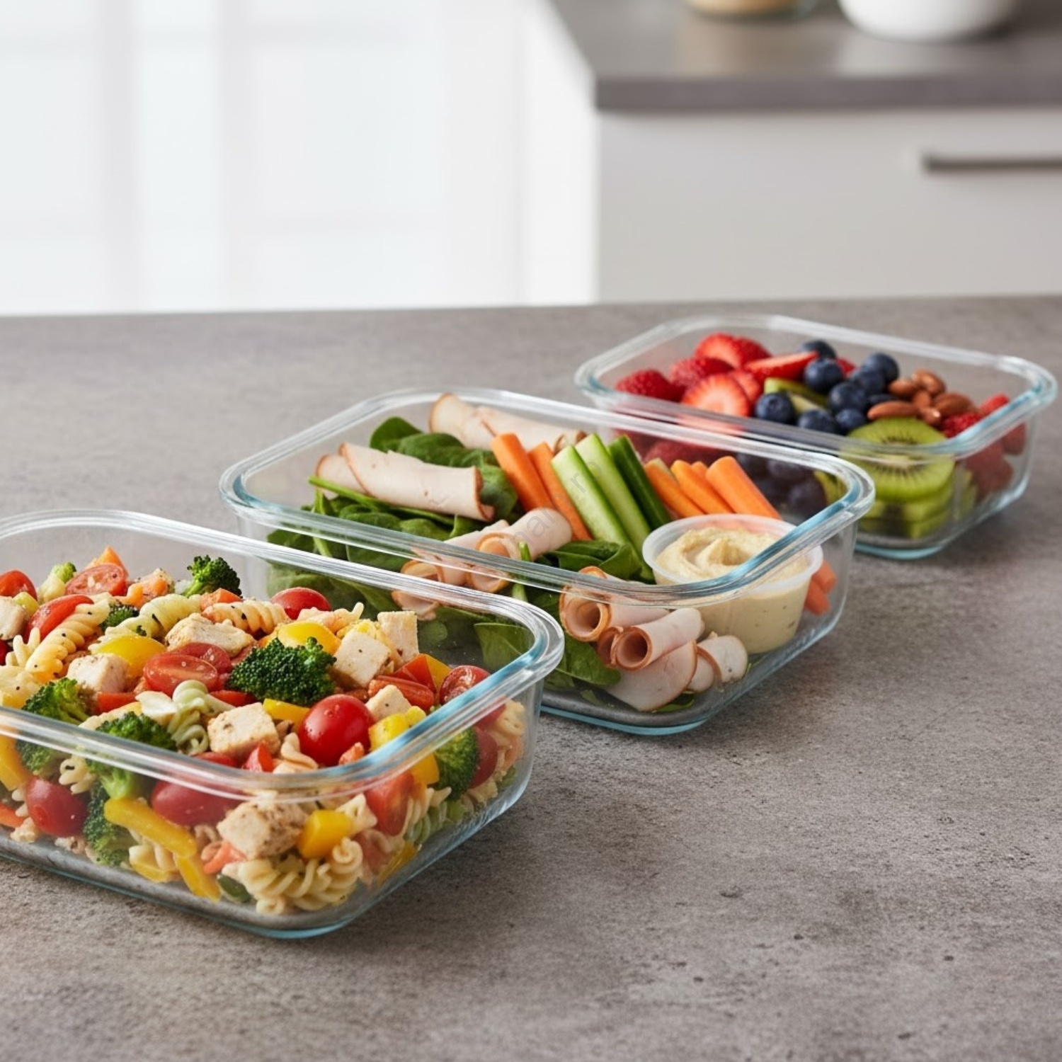 Set de 4 recipiente pentru depozitare a alimentelor, transparente/mentă