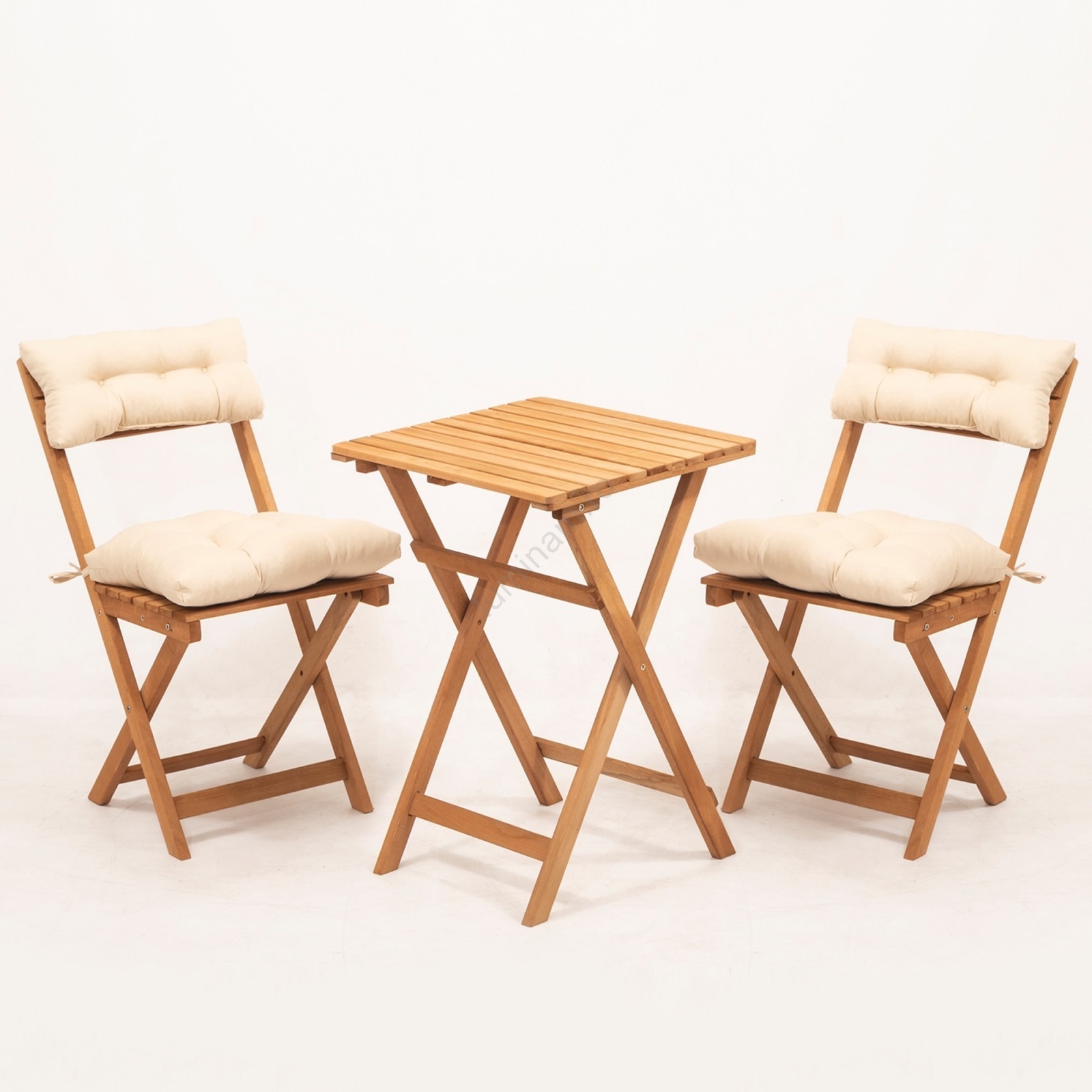 • Acest set de grădină elegant și practic realizat din lemn masiv de fag este soluția ideală pentru balcoane, terase sau curți mai mici.