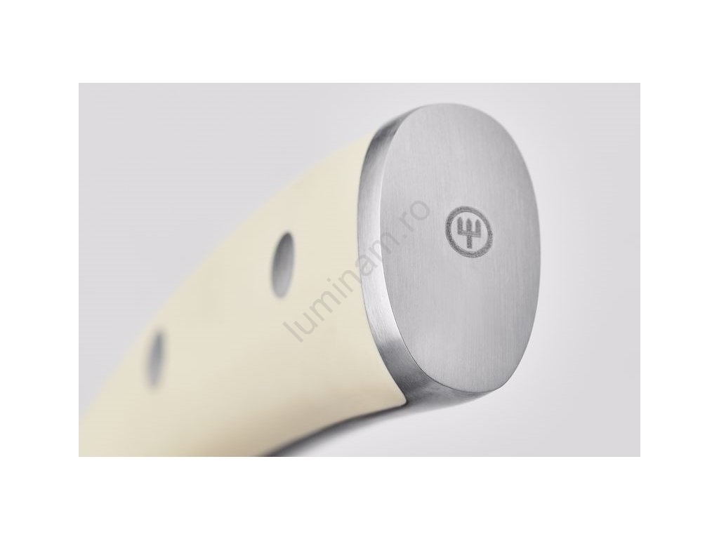 • Mâner de culoare crem realizat din material sintetic special, ergonomic, plăcut la atingere, cu trei nituri.