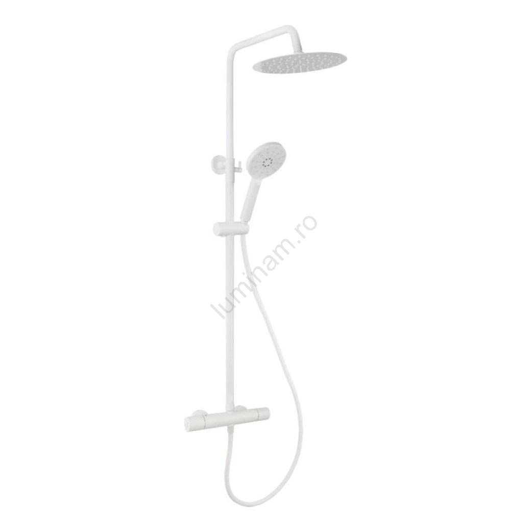 Set de duș DRAGOR cu baterie termostatică, alb mat