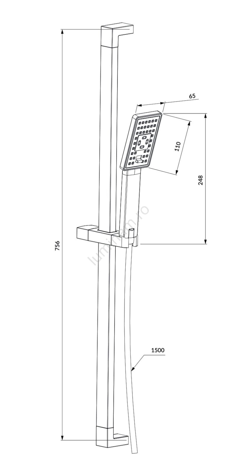 • Setul conține: duș manual din alamă (3 funcții), furtun de duș acoperit cu PVC, bară de duș din oțel inoxidabil cu suport pentru dușul manual.