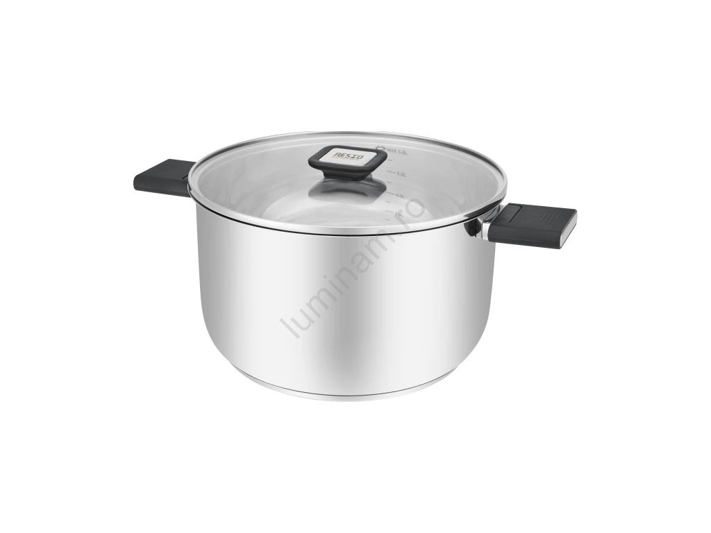 • Capacul dispune de un mâner inovator cu două poziții pentru ridicare sigură și economisirea spațiului.