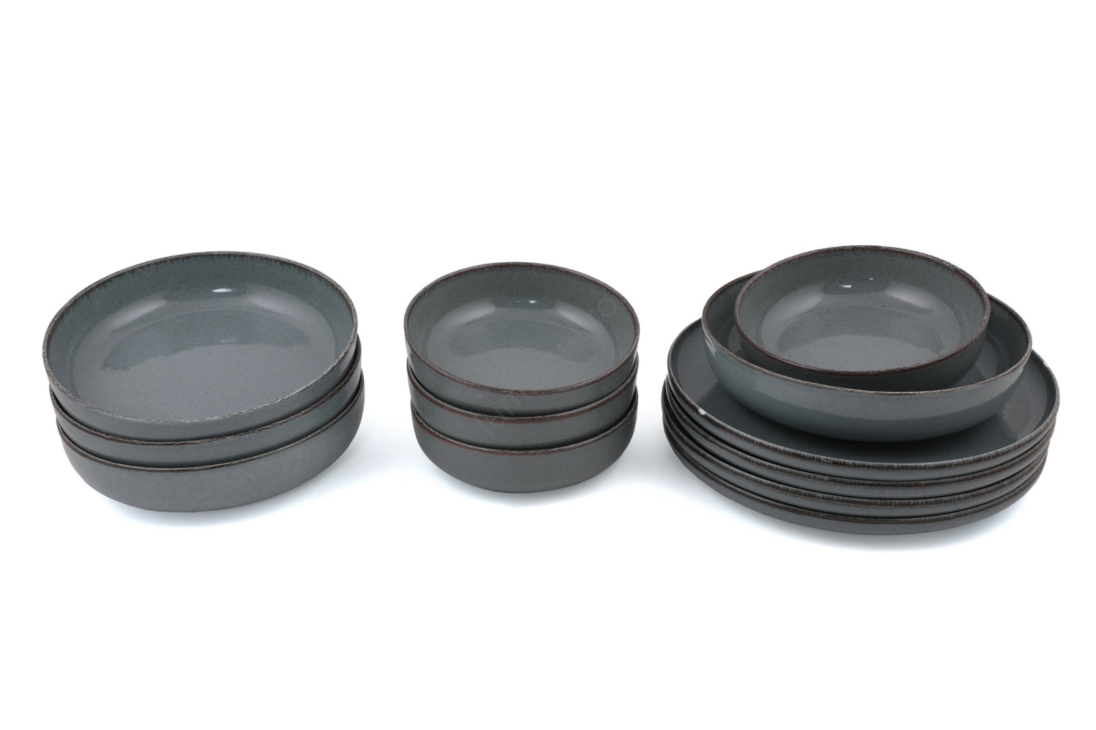 Set de veselă, 12 piese, gri/porțelan