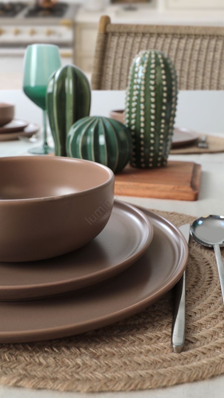 Set de veselă 18 piese maro/ceramică