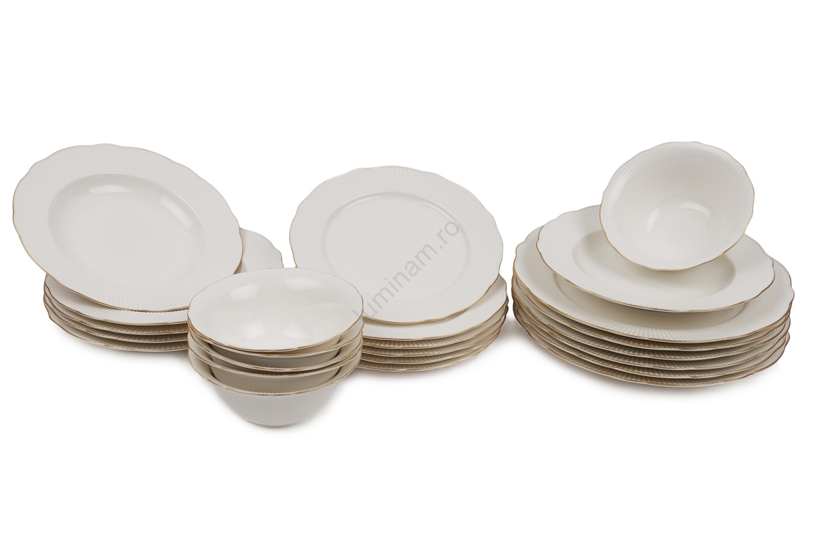 Set de veselă din porțelan, 24 piese, alb/auriu