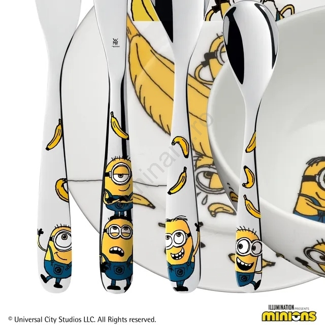 • Set de veselă și tacâmuri cu tema MIMONI, ideal pentru copii și perfect pentru micii gurmanzi.