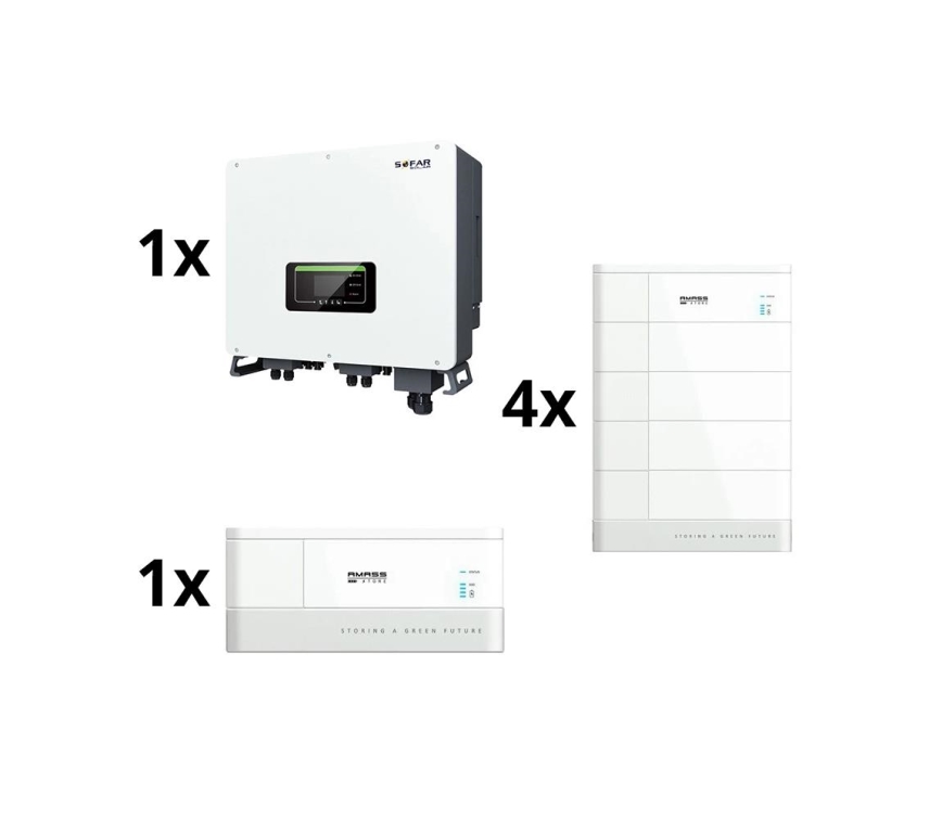 Sistem solar: Invertor hibrid SOFAR Solar 6kW + modul baterie AMASSTORE 10,24kWh cu bază și unitate de control a acumulatorului