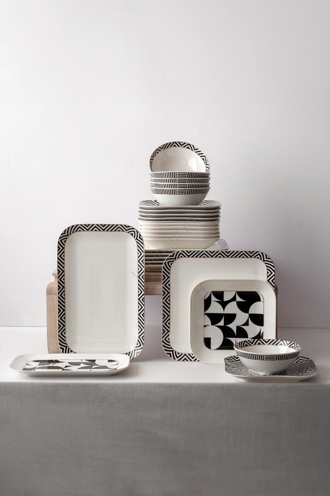 Set veselă 26 piese, porțelan, alb/negru