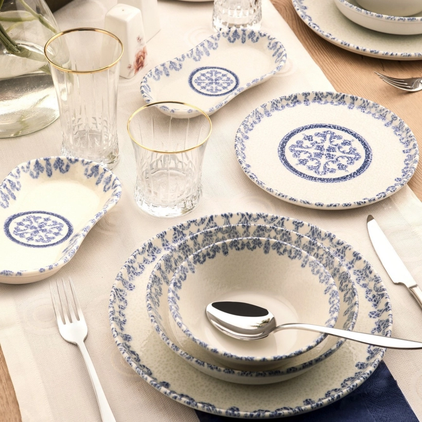 Set veselă 27 piese din porțelan, alb/albastru