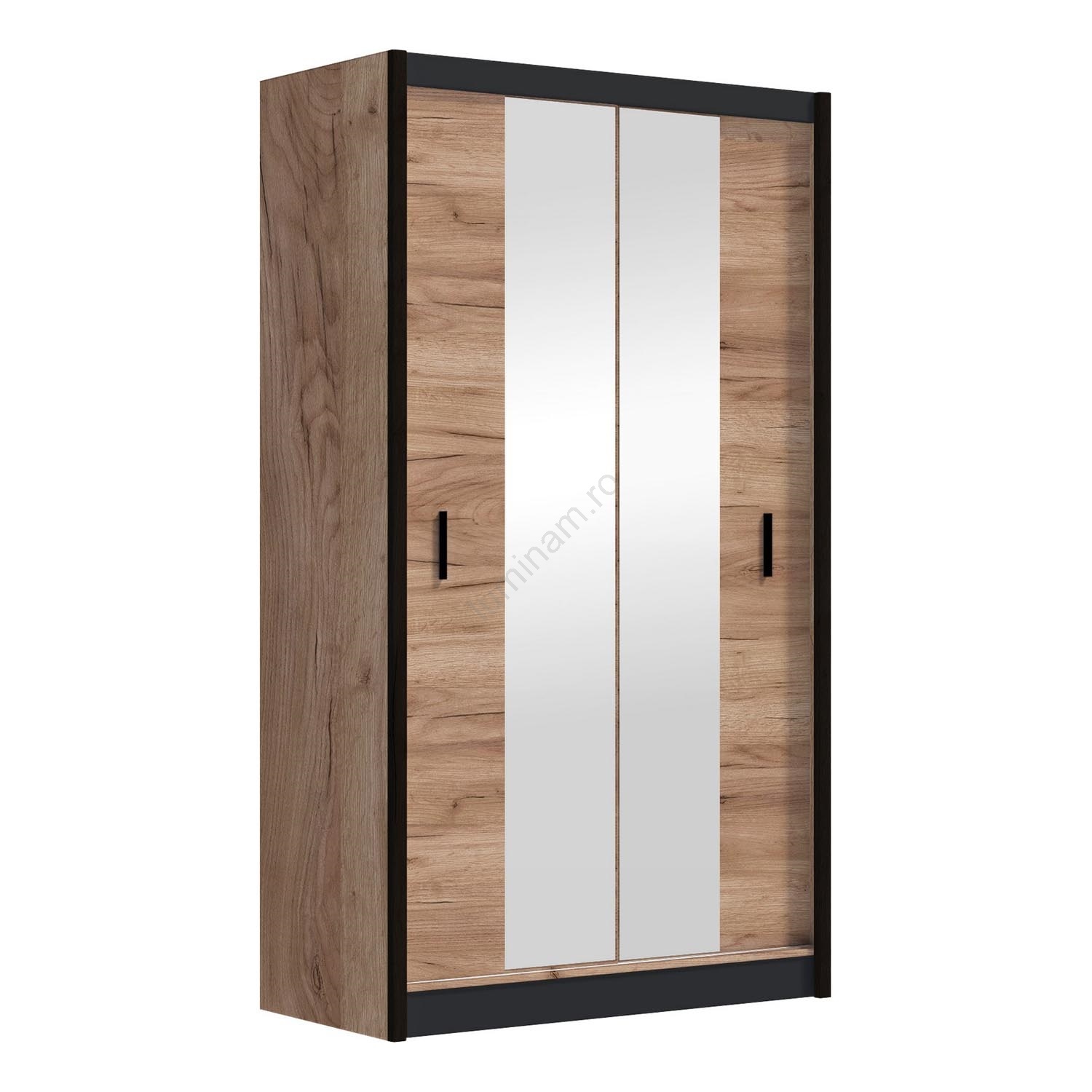 Dulap de haine cu oglindă MIRO 120x215 cm stejar craft/negru