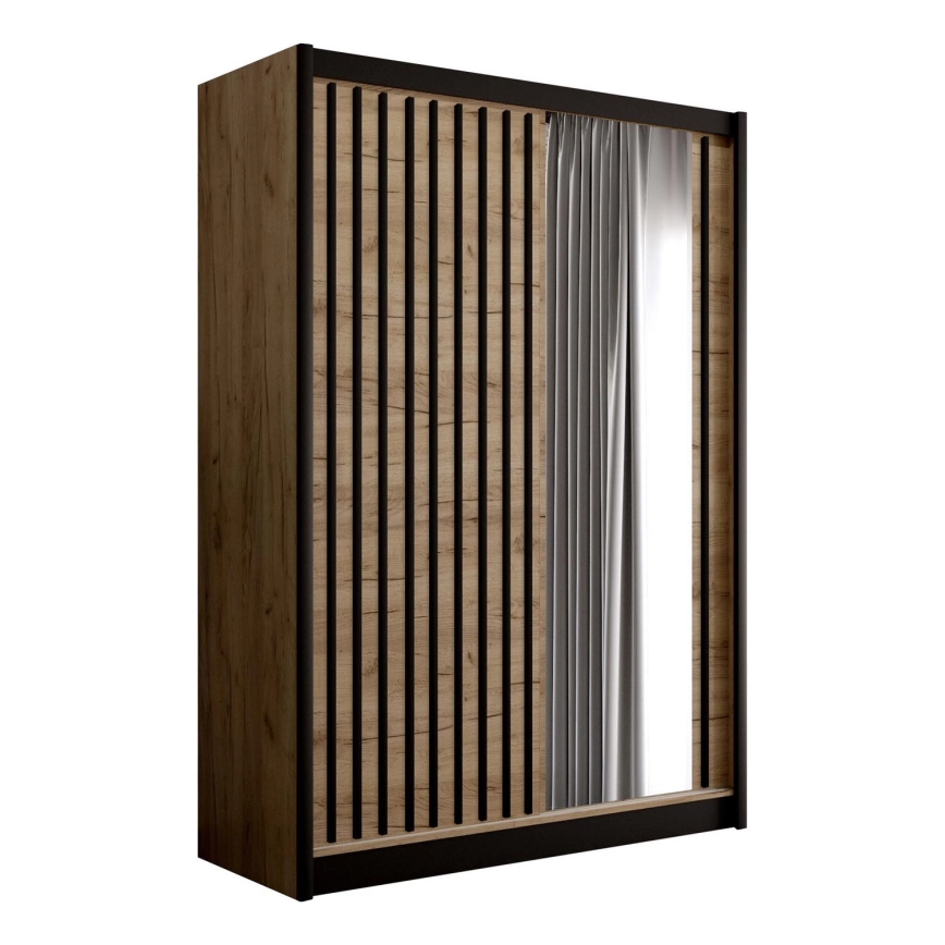 Dulap SANTINO cu oglindă 150x215 cm stejar craft/negru
