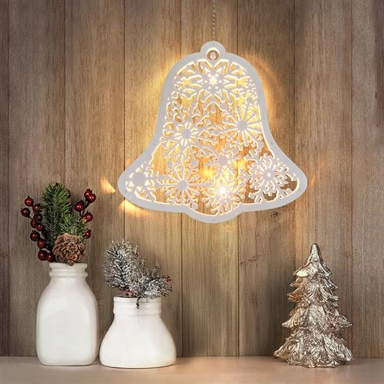 • Clopoțel decorativ de Crăciun din lemn cu LED.