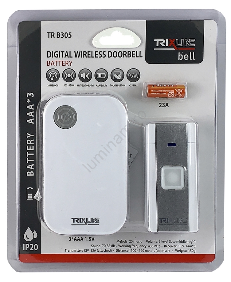 • Alimentare receptor (sonerie): 3x AAA 1,5V (nu este inclus în pachet).