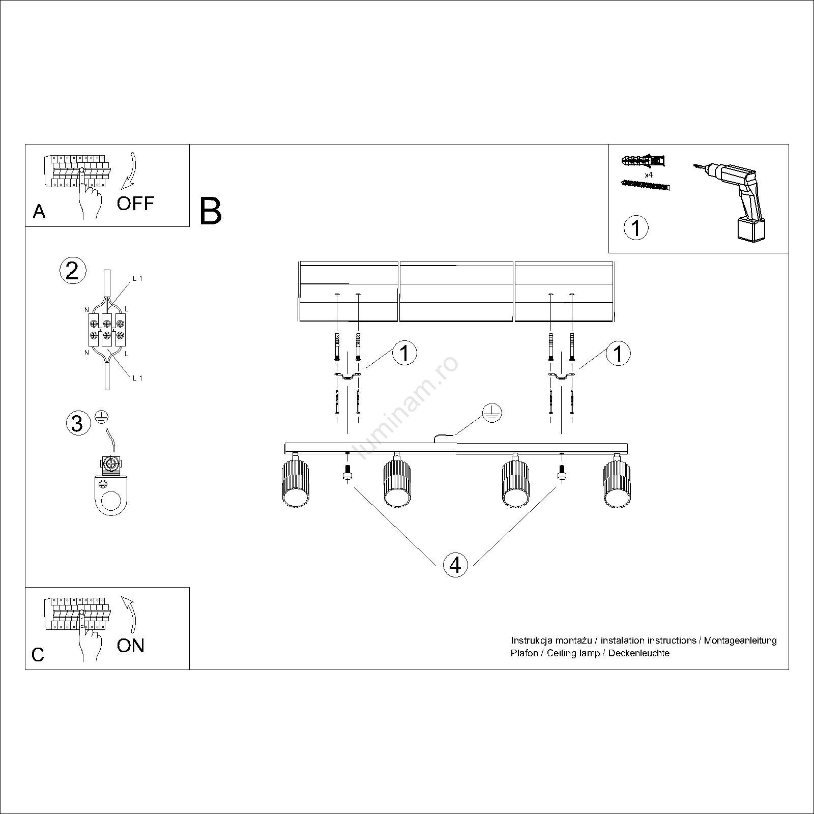 • Brilagi - Spot LED CRESTO, 4x GU10, 10W, 230V, negru