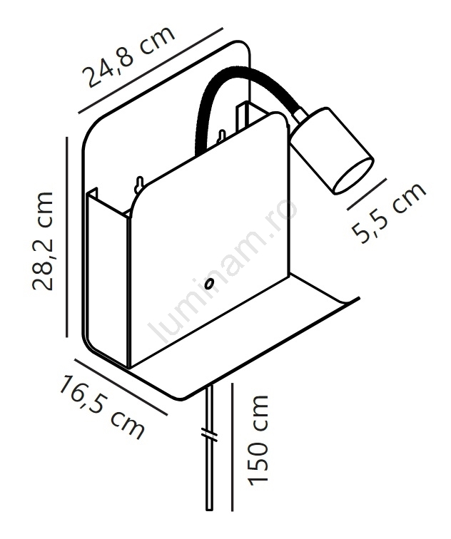 • Nordlux - Aplica de perete cu spot, poliță și USB ROOMI 1xGU10/8W/230V negru