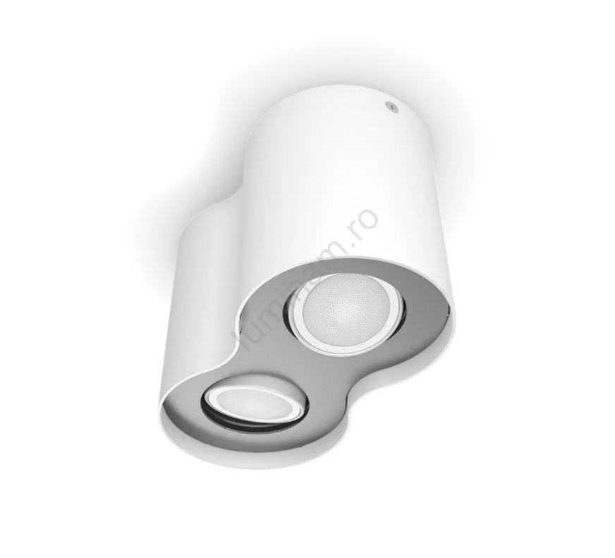 • Spot LED cu luminozitate reglabilă din seria Hue de corpuri de iluminat inteligente de culoare albă.