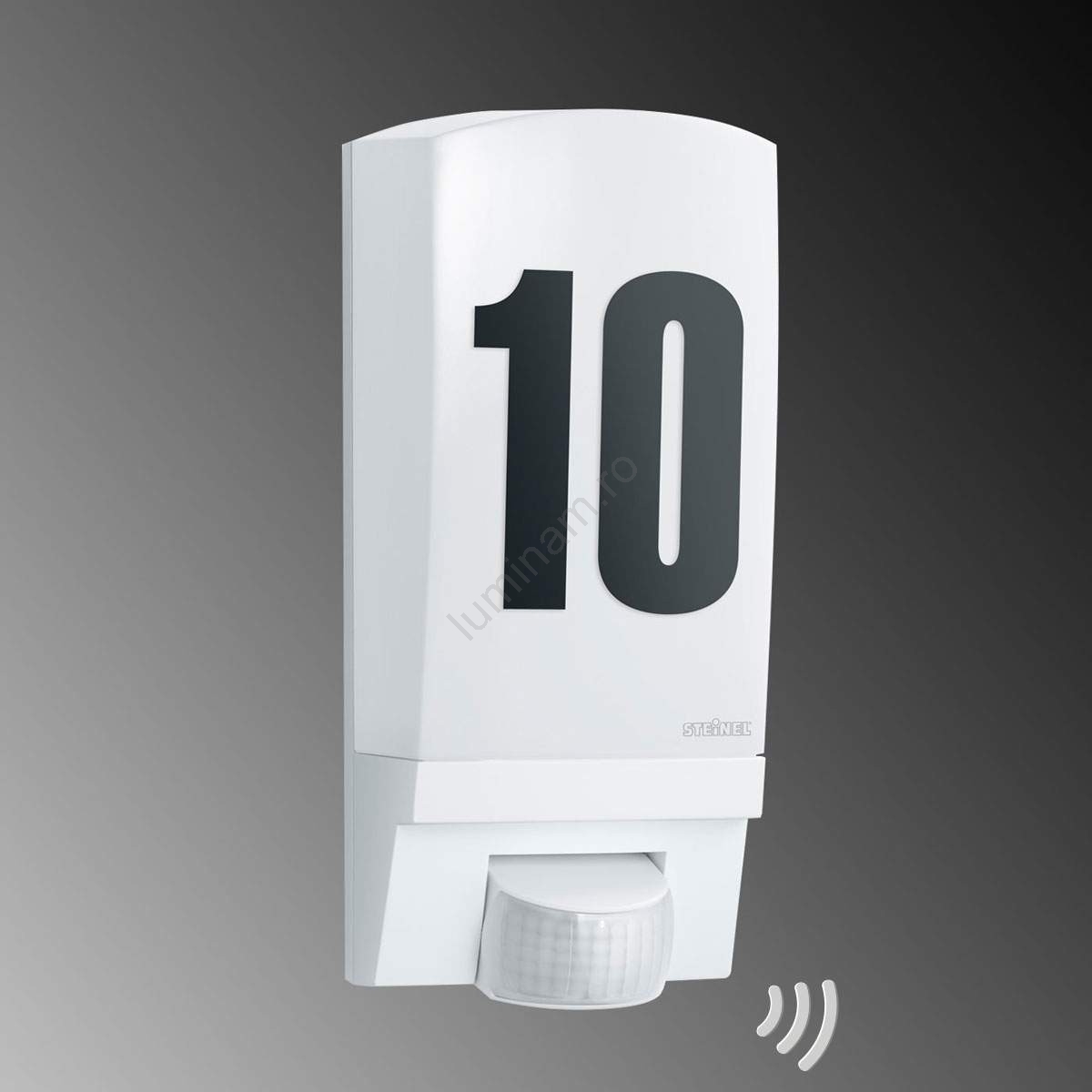 • Corp de iluminat de perete cu senzor și număr de casă pentru spații exterioare.