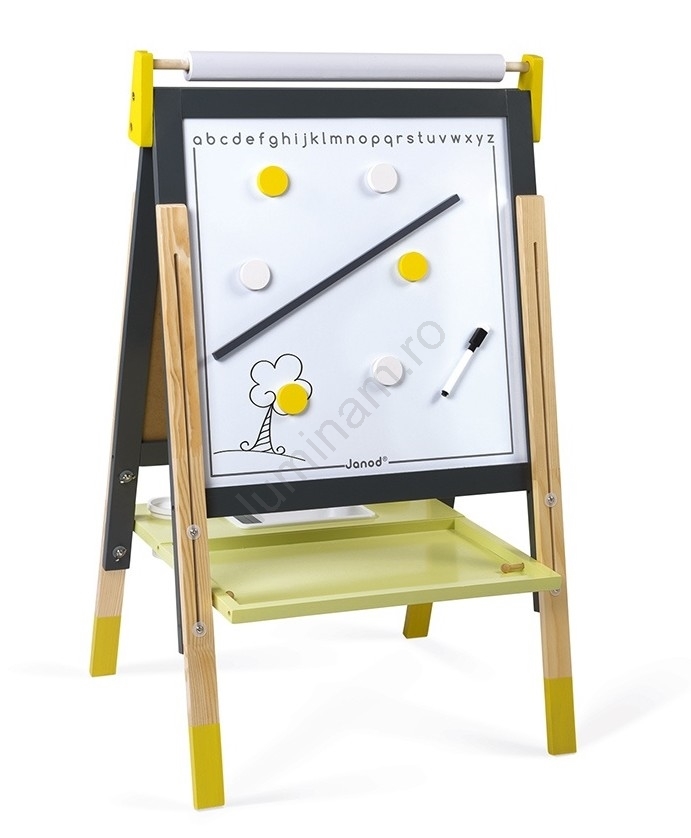 • Partea a doua a tablei este magnetică și poate fi folosită pentru desen sau scris cu un marker special pentru tabla magnetică.