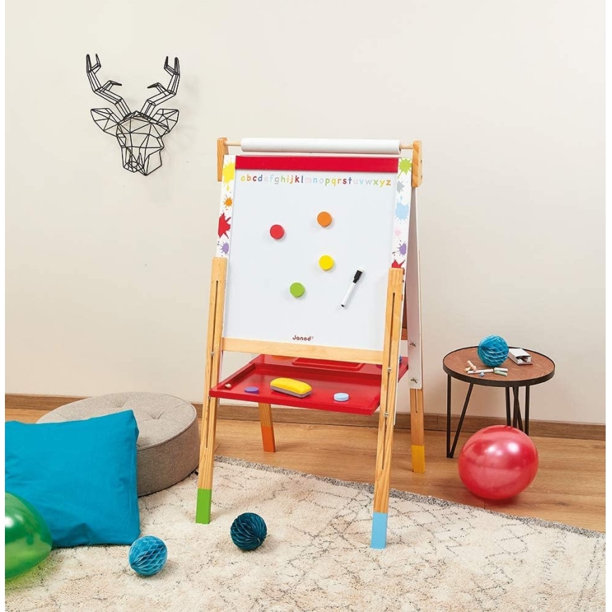 • Tabla magnetică din lemn Grafitti Splash este reglabilă pe înălțime, adaptându-se și crescând odată cu copilul.
