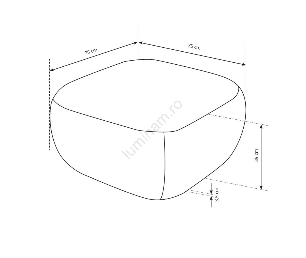 • Adâncimea șezutului de 75 cm oferă suficient spațiu pentru șezut relaxat și ergonomic.