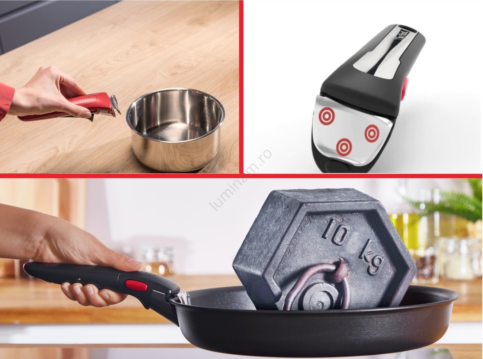• Datorită mânerului detașabil și designului stivabil puteți economisi până la 50 % din spațiul din dulapurile de bucătărie.