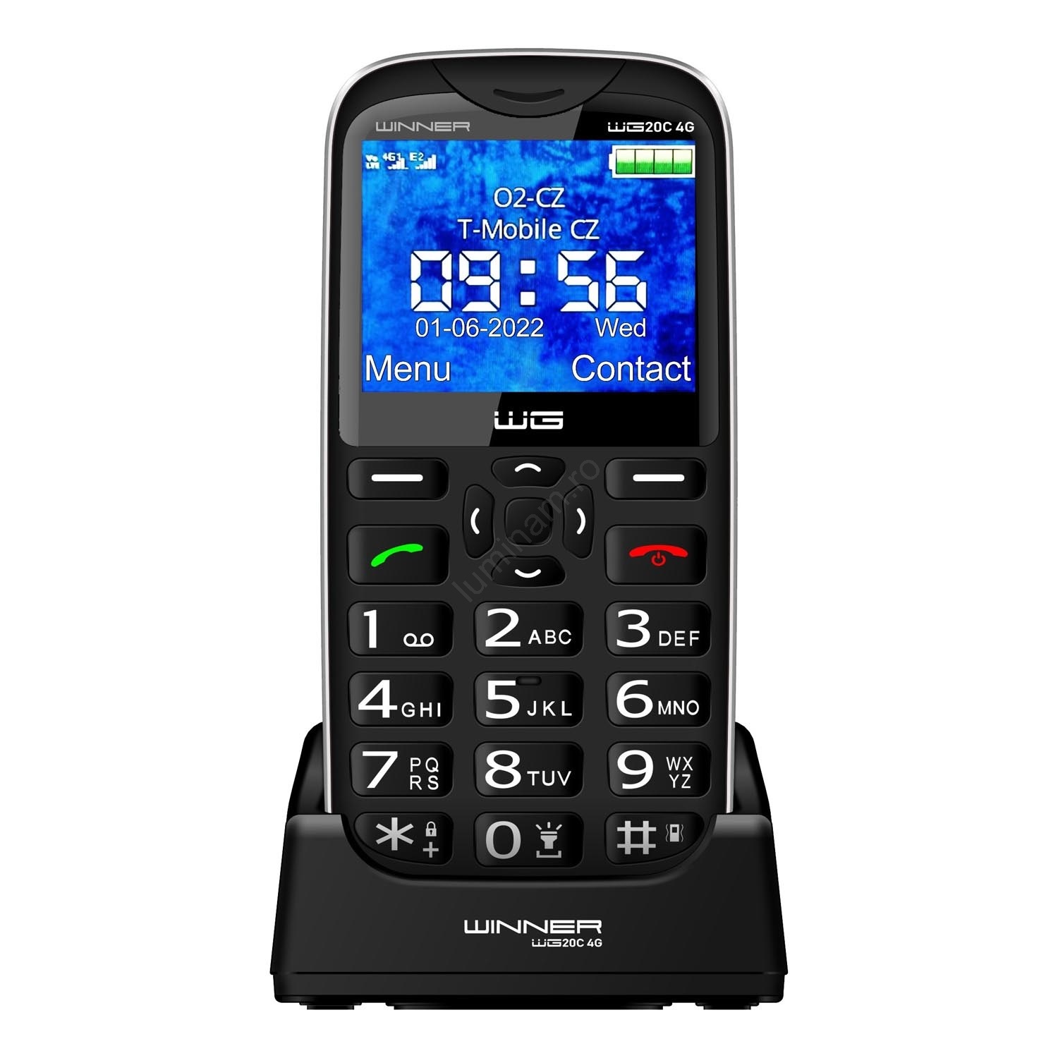 • Pe spatele telefonului Winner WG20 C veți găsi un vizibil buton SOS cu localizator GSM, prin care persoana apropiată vă poate chema ajutorul imediat.