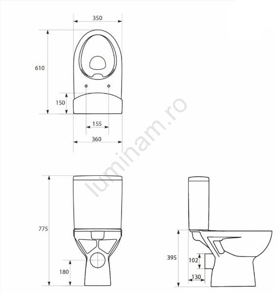 • Racordul de alimentare cu apă este amplasat lateral pe rezervor.